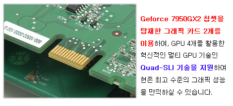 ½Ã±×¸¶ÄÄ nVIDIA GeForce 7950 GX2 1024MB 512Bit Á¦Ç°Àº nVIDIAÞäÀÇ 'GeForce7950 GX2'¸¦ ÀåÂøÇÑ Á¦Ç°ÀÔ´Ï´Ù. 2°³ÀÇ ±âÆÇÀ¸·Î ÇϳªÀÇ PCI-Express ½½·Ô¿¡¼ SLI±â¼úÀ» ±¸ÇöÇÑ µà¾ó GPU ±×·¡ÇÈ Ä«µå·Î½á, °¢°¢ ±âÆÇº°·Î 256bit 512MB GDDR3 SDRAMÀÇ ¸Þ¸ð¸®¸¦ žÀçÇÏ¿© 512Bit 1GB GDDR3 SDRAMÀ» ÀåÂøÇϰí ÀÖÀ¸¸ç ÄÚ¾î Ŭ·°/¸Þ¸ð¸® Ŭ·°ÀÌ 500Mhz/600(1200)Mhz ÀÔ´Ï´Ù. nVIDIAÀÇ Quad SLI Multi-GPU Ready Á¦Ç°À¸·Î¼ SLI¸¦ Áö¿øÇÏ´Â ¸ÞÀκ¸µå¿¡ º¹¼öÀÇ GeForce 7950GX2 Ä«µå¸¦ ÀåÂøÇÏ¿© ÃÑ 4°³ÀÇ GPU¸¦ Ȱ¿ëÇÑ Quad SLI ±â´ÉÀ» ÅëÇÏ¿© ¸Å¿ì ¶Ù¾î³ 3D °¡¼Ó ´É·ÂÀ» ¹ßÈÖÇÒ ¼ö ÀÖ½À´Ï´Ù. PCI-Express X16À» Áö¿øÇϰí DirectX 9.0c¿Í OpenGL 2.0À» ¿Ïº®ÇÏ°Ô Áö¿øÇϸç 24 x 2°³ÀÇ Çȼ¿ ÆÄÀÌÇÁ¶óÀÎÀ¸·Î ³ôÀº ¼º´ÉÀ» Á¦°øÇÕ´Ï´Ù. ¶ÇÇÑ °í¼º´ÉÀÇ Ä𷯸¦ ±âº» ÀåÂøÇÏ¿© Àú¼ÒÀ½ÀÇ ³ôÀº Ä𸵠¼º´ÉÀ» Á¦°øÇϰí DVIÆ÷Æ®´Â Dual Link Ãâ·Â Áö¿øÀ¸·Î °íÇØ»óµµ ¸ð´ÏÅÍ¿Í ¿¬°áÇÏ¿© »ç¿ëÇÒ ¼ö ÀÖ½À´Ï´Ù.